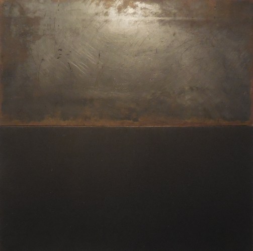 Materials: Panel, japanese paper, clay, oil, copper powder, corrosive.